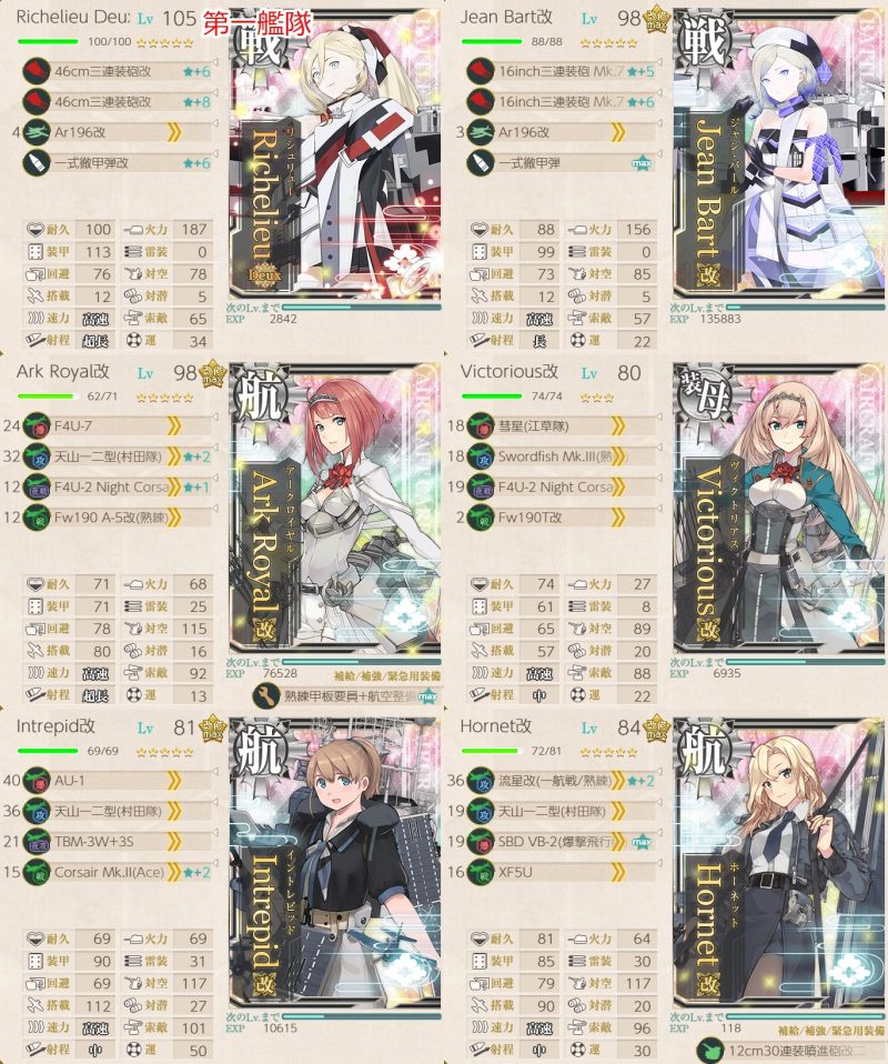 火力のメインは空母で、艦載機特効の組み合わせを考えて火力が出るように調整。