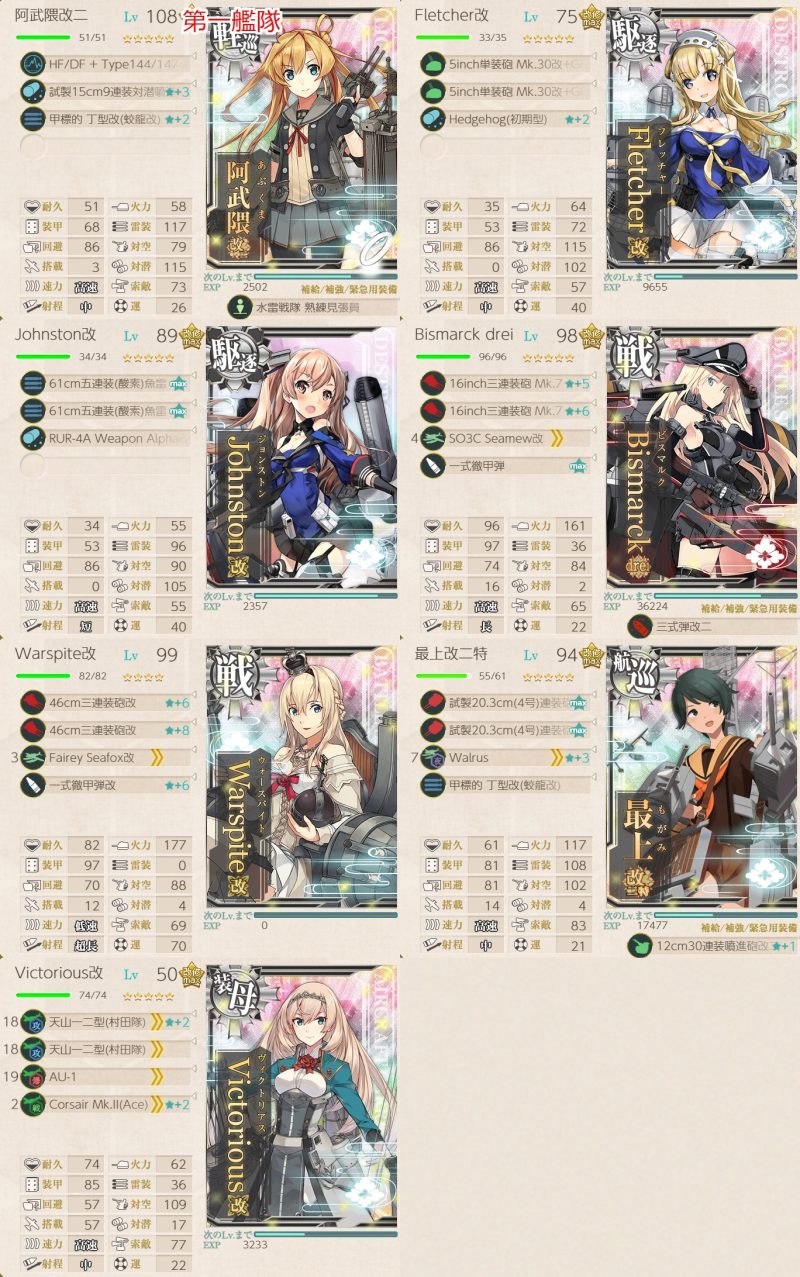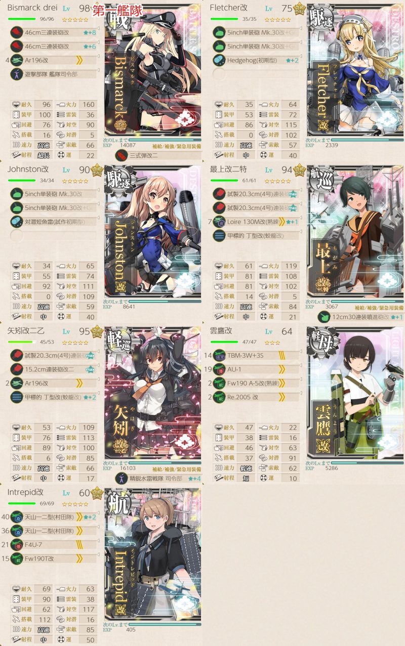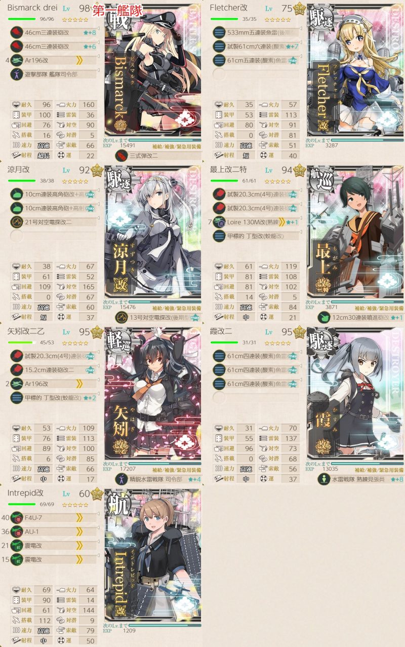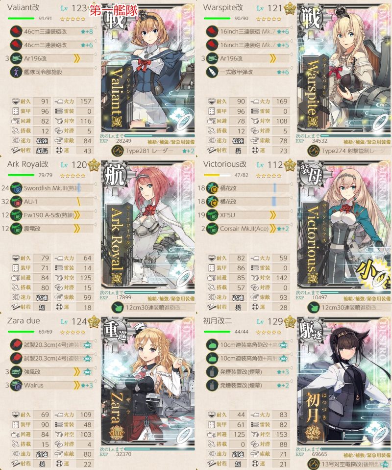 初月以外はメイン艦(サブは残しています)