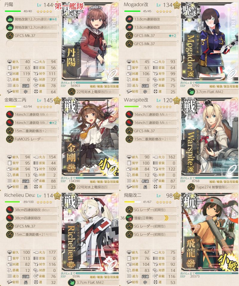 イギリス艦の特効が大きく、同航戦以上なら敵第一艦隊にも大ダメージを与えてくれます。