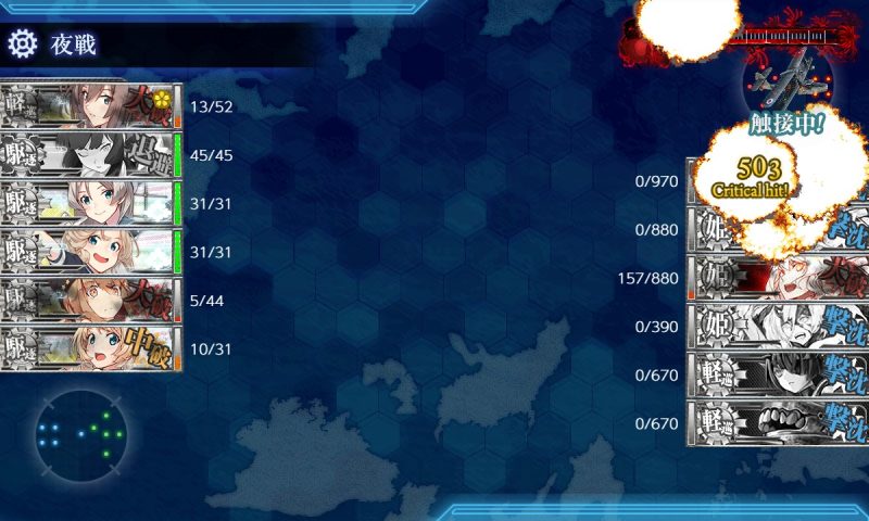 削りからクリアまで、なぜか霞が必ず道中で中破以上または退避させられました。