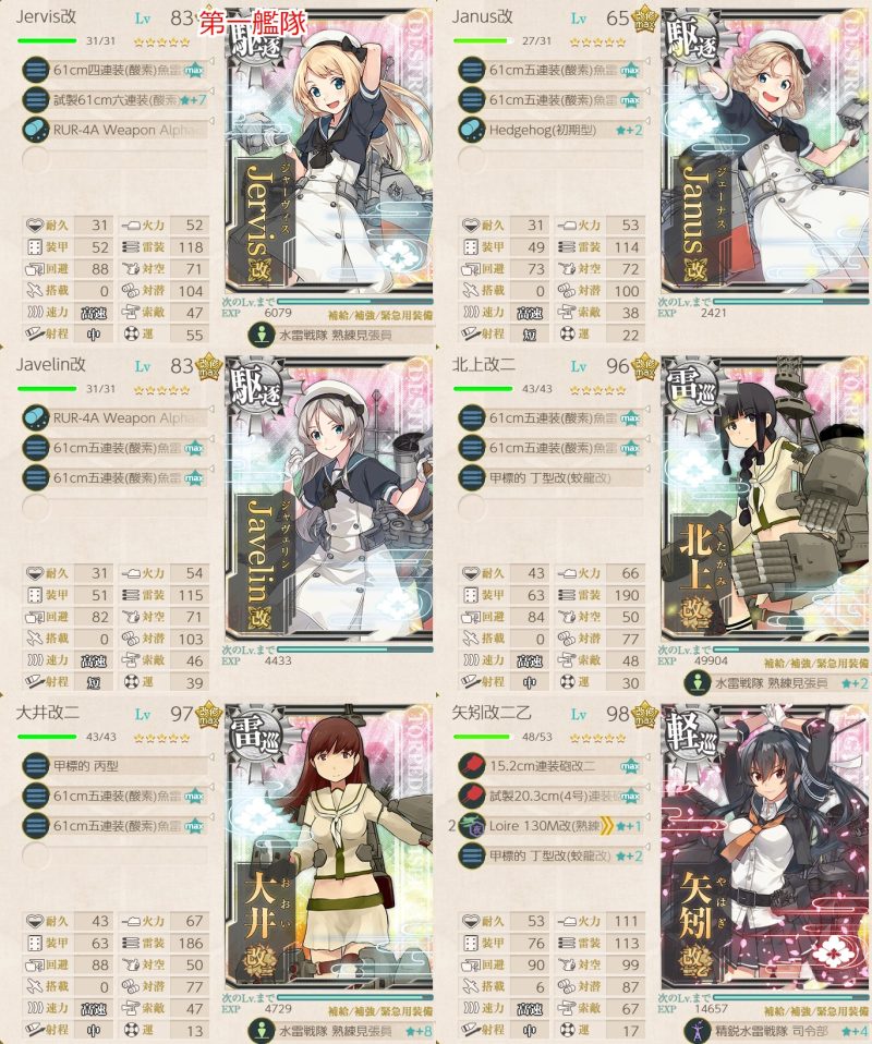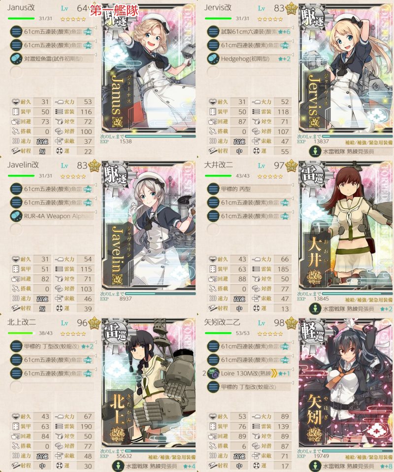 T字有利を引いてくれて昼戦で2隻を残して撃沈、夜戦で2択になっていたのをジャベリンのカットインで止め。