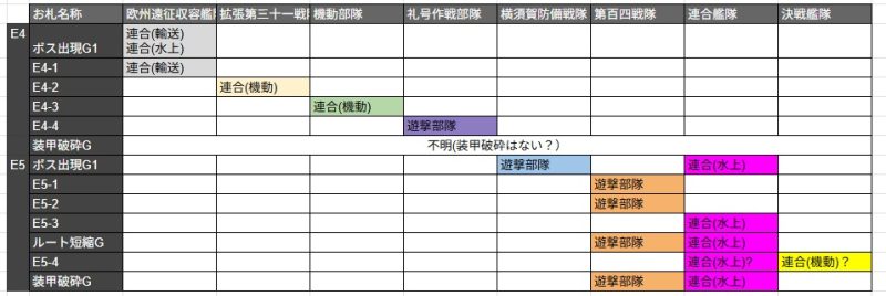(軽巡2駆逐5、水母2駆逐4などが代表例、他にも編成によってはE4-1スタートになるかも)