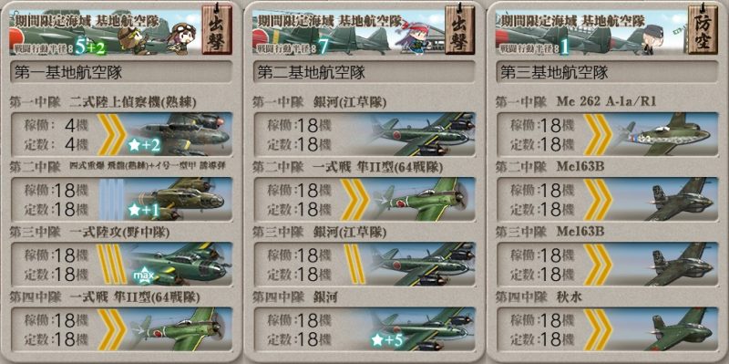 第一部隊をE、G(ギミック)マスに、第二、第三部隊で防空します。