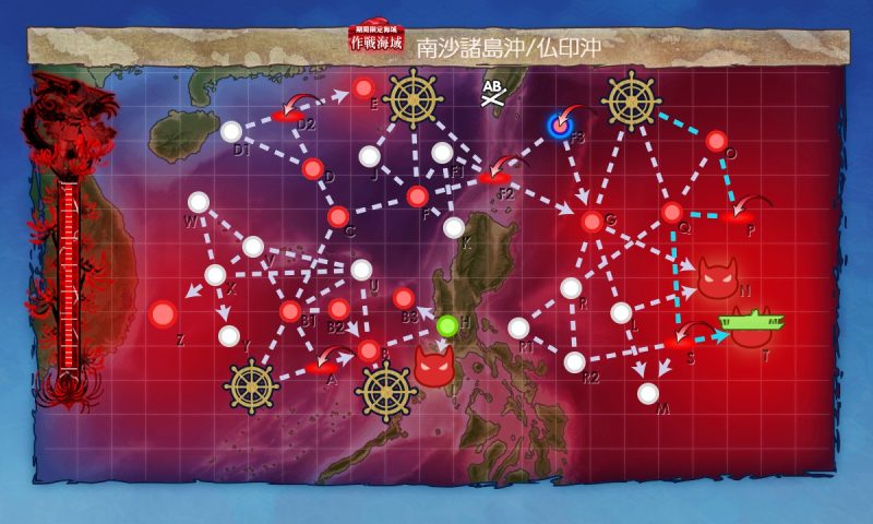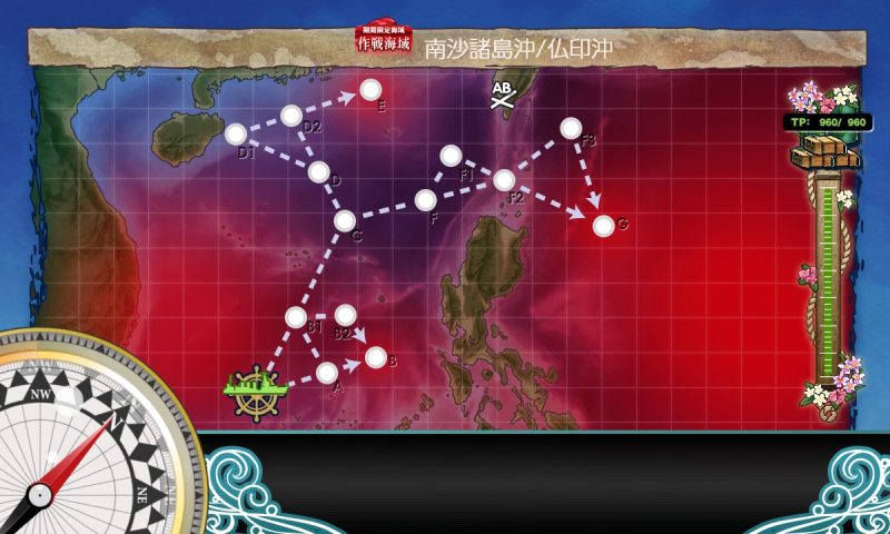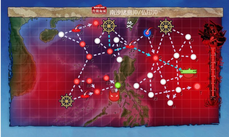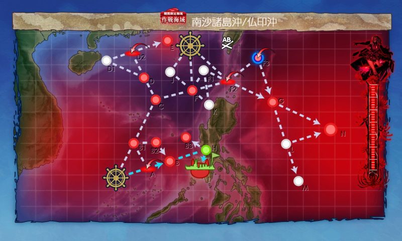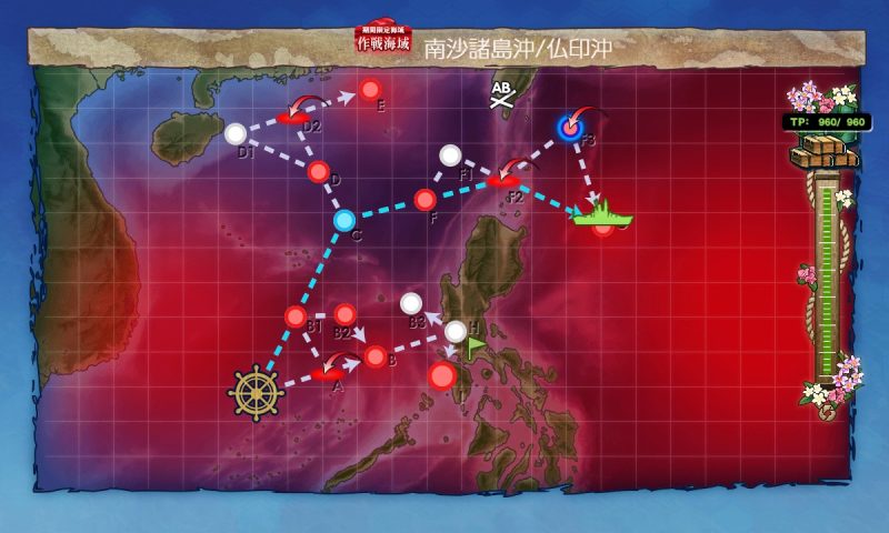 Gマス:B1(対潜、第一)→C(能動分岐)→F(通常、第四)→F2(空襲、第三)→G(通常、ギミック、第四)