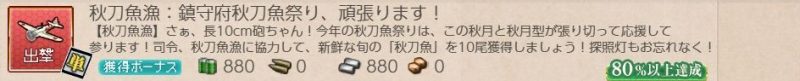 [期間限定任務][単発任務]秋刀魚漁:鎮守府秋刀魚祭り、頑張ります!の記録です。