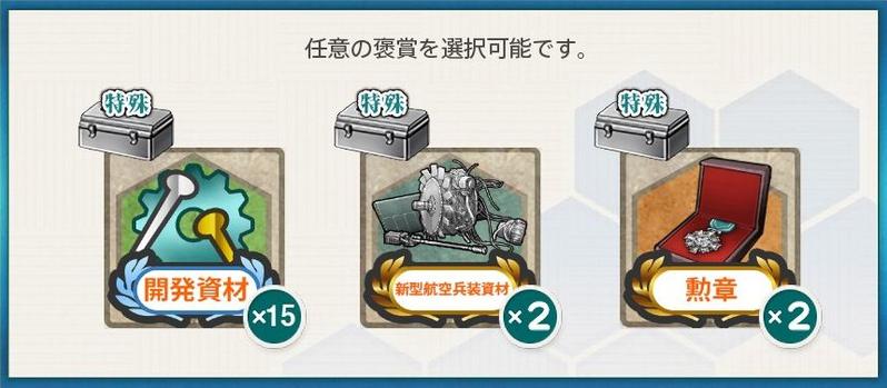 燃料1000、弾薬1000、ボーキサイト1000、菱餅×4、以下いずれかを選択