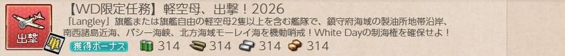 [期間限定任務][単発任務]【WD限定任務】軽空母、出撃!2026の記録です。