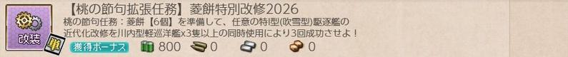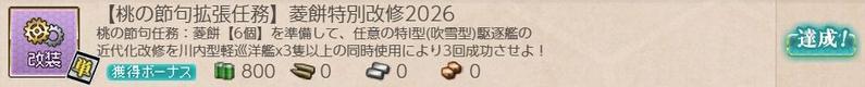 [期間限定任務][単発任務]【桃の節句拡張任務】菱餅特別改修任務2026の記録です。