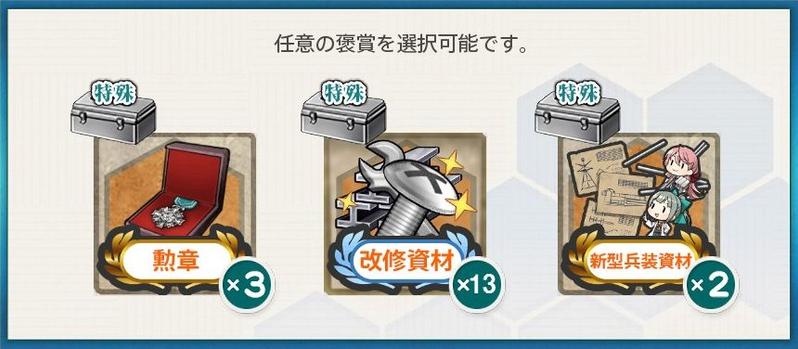 菱餅×6を準備して、川内型軽巡洋艦3隻以上を同時に使用して、特Ⅰ型(吹雪型)駆逐艦の近代化改修を3回成功させる。