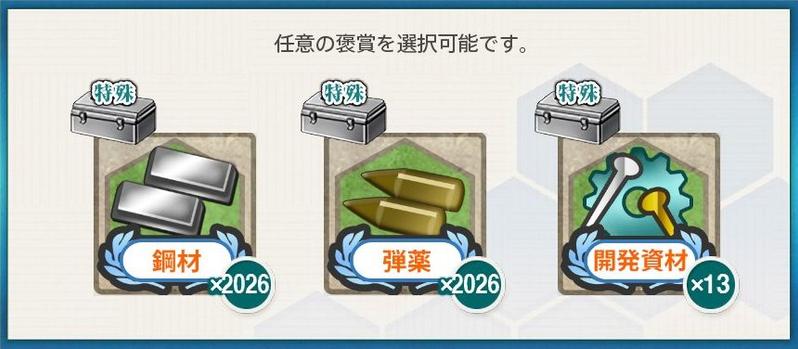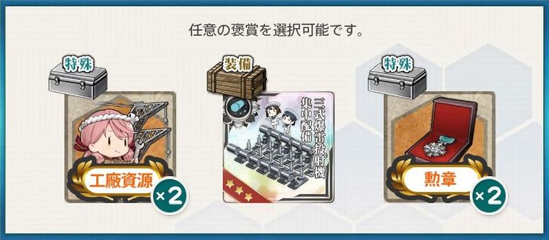 開発資材×13、三式爆雷投射機集中配備×1を選びました。