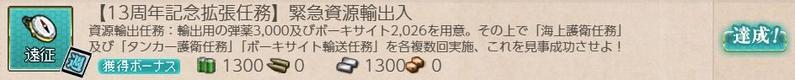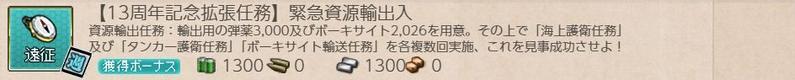 [期間限定任務][ウィークリー任務]【13周年記念任務】緊急資源輸出入の記録です。