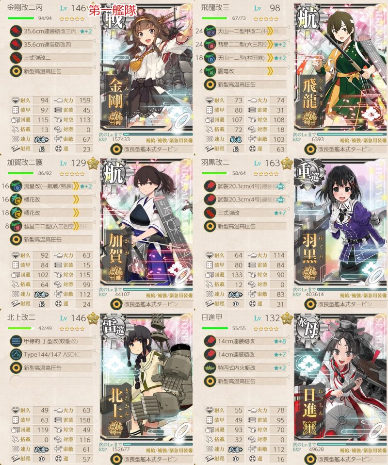水上機母艦、または揚陸艦1隻+5隻自由な編成で、4-5、6-4で2回ずつA勝利以上を取得する。