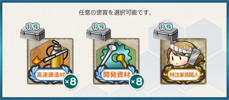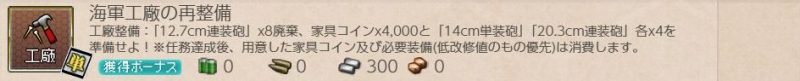特注家具職人×1、新型噴進装備開発資材×1を選びました。