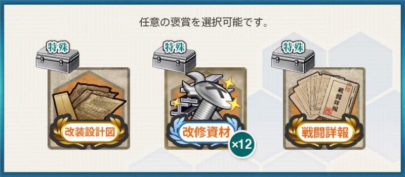 戦闘詳報×1、海外艦最新技術×3を選びました。