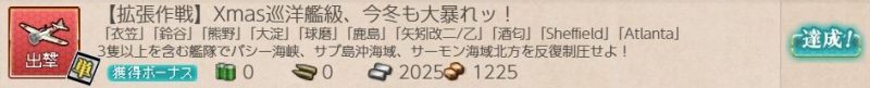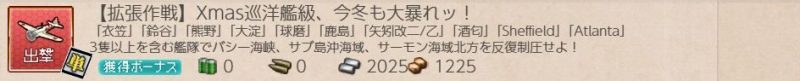 [期間限定任務][単発任務]【拡張作戦】Xmas巡洋艦級、今冬も大暴れッ!の記録です。