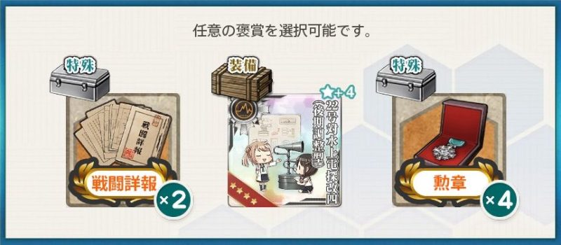 海外艦最新技術×2、22号対水上電探改四(後期調整型)★4×1を選びました。