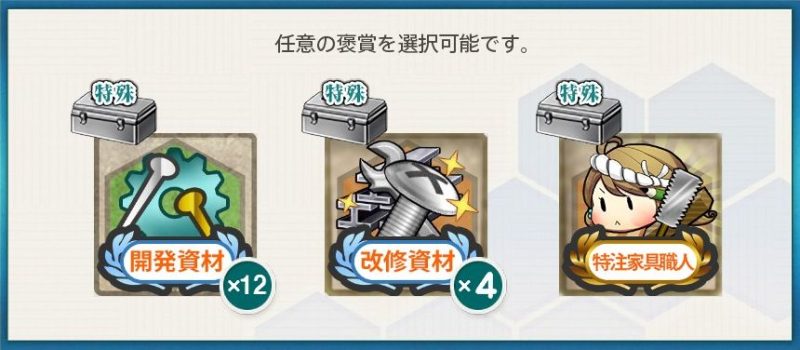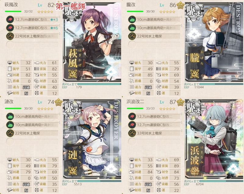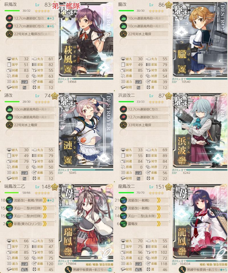 「萩風」「親潮」「霰」「朧」「漣」「潮」「曙」「夕雲」「早波」「浜波」「巻波」「岸浪」「狭霧」「Johnston」のうち4隻以上を含む編成で1-1、1-3ボスでS勝利を3回以上取得する。