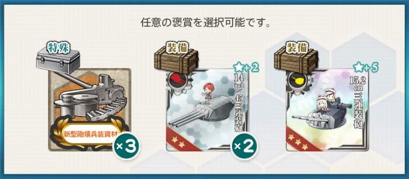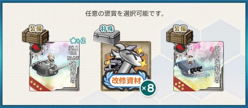 新型砲熕兵装資材×3、38cm四連装砲改×1を選択しました。
