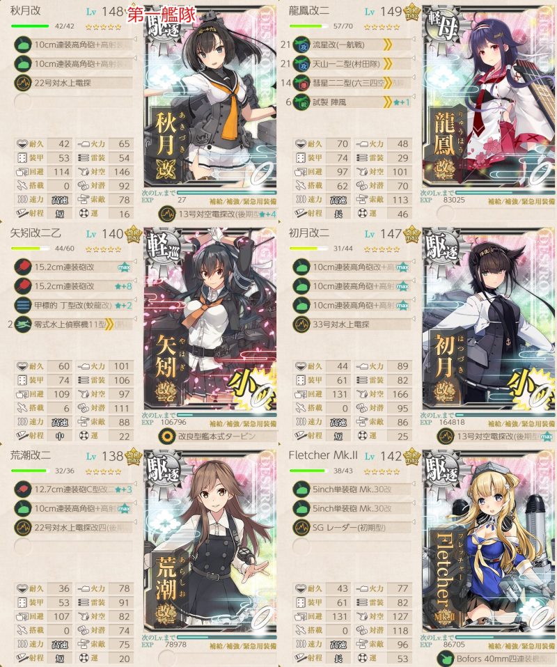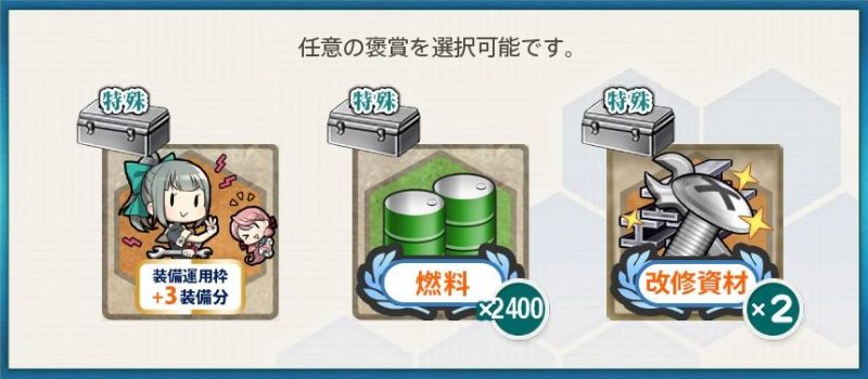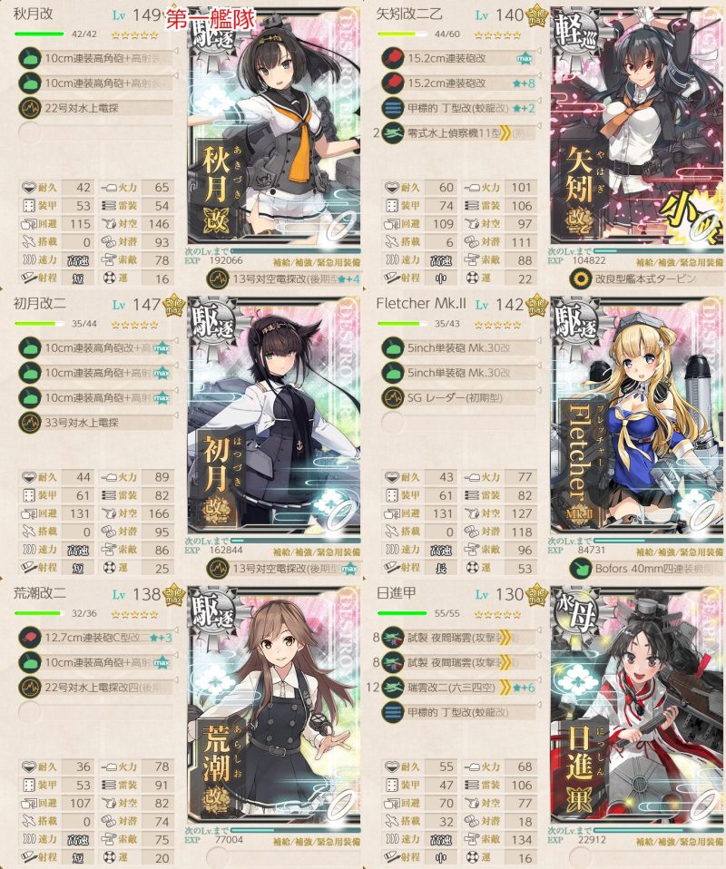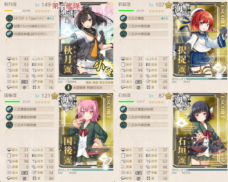 「秋雲」「秋霜」「秋月」「秋津洲」のいずれかを旗艦とした艦隊で、1-3、1-4、1-5、2-1ボスで2回ずつA勝利以上を取得する。