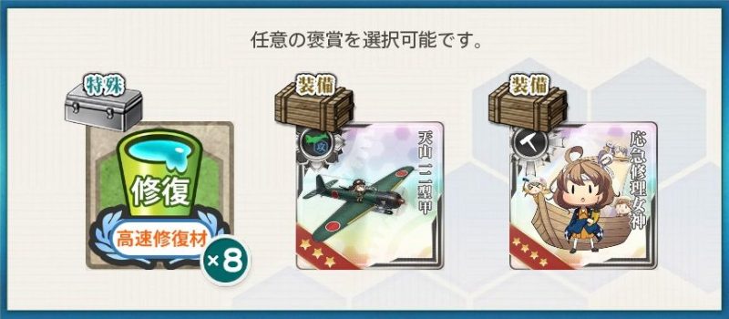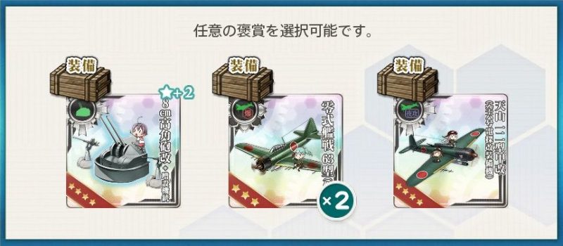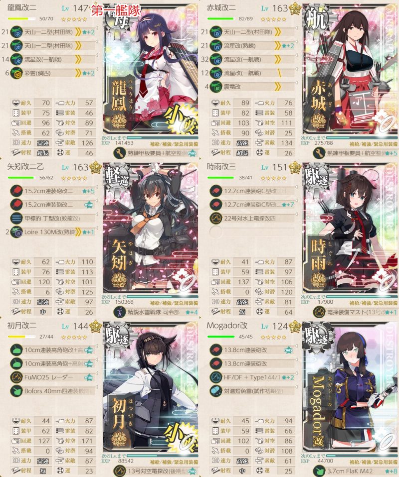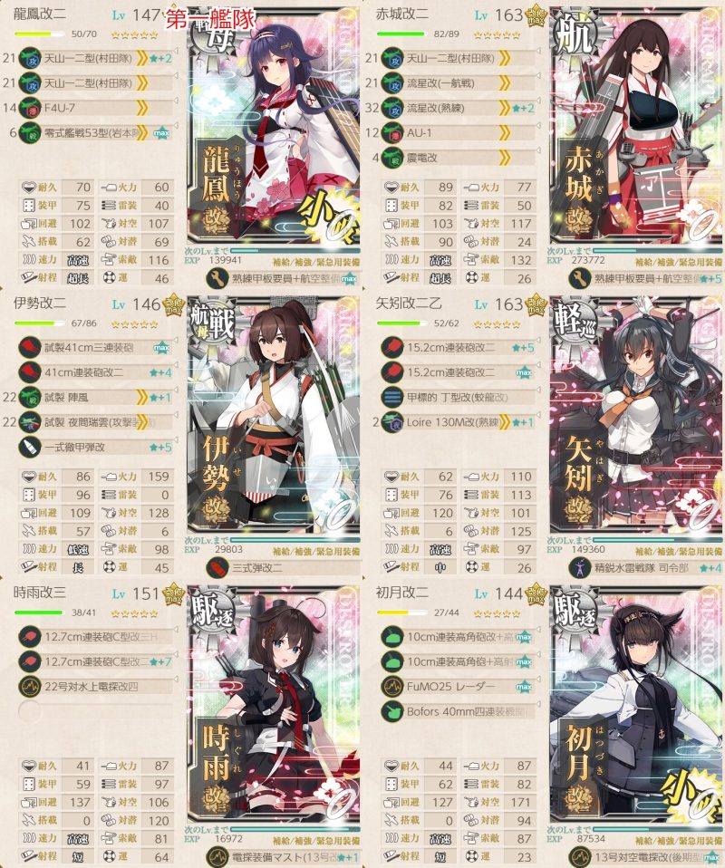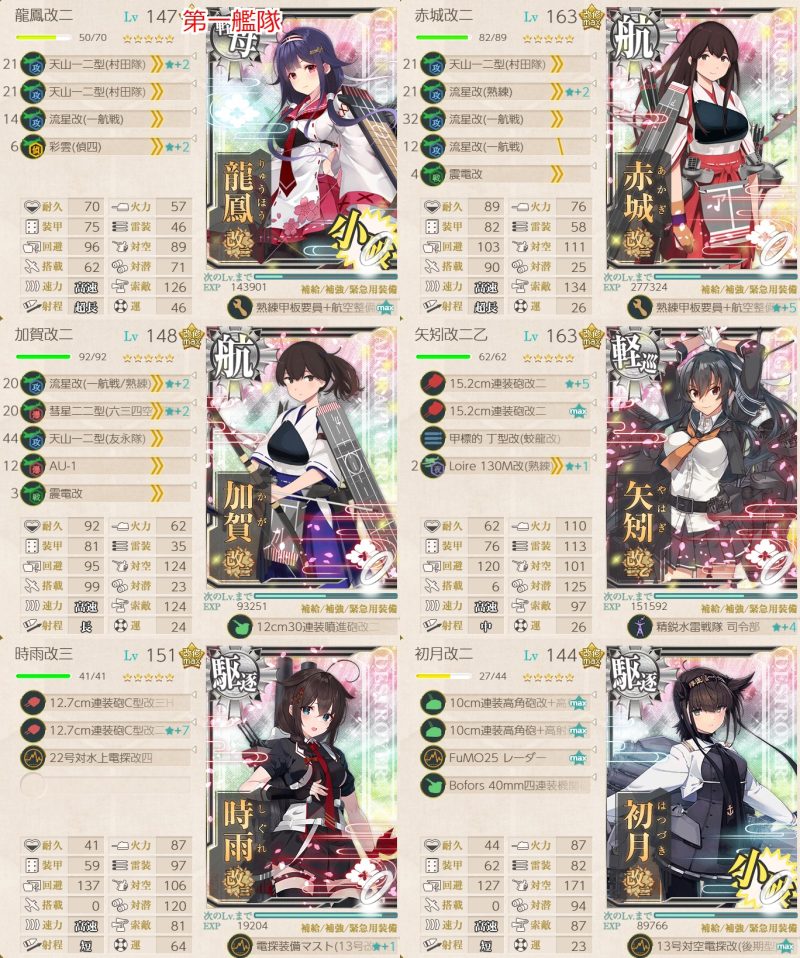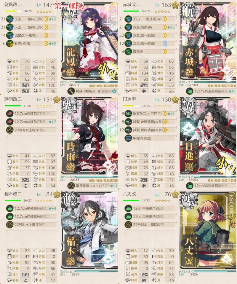 旗艦に「劉邦改二(改二戊)」、随伴に「時雨改二(改三)」、他自由な編成で、2-2、2-3、2-4、2-5、7-2-2ボスで1回ずつS勝利を取得する。