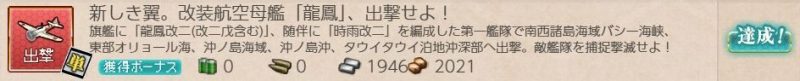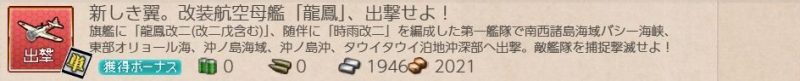[単発任務]新しき翼。改装航空母艦「龍鳳」、出撃せよ!の記録です。