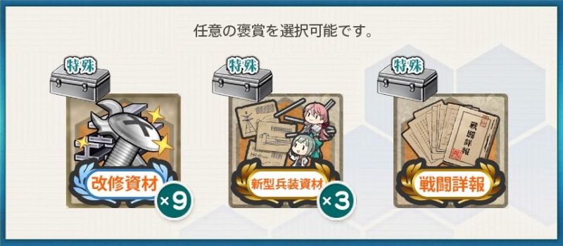 戦闘詳報×1、逆単(E27)+22号水上電探改四(後期調整型)×1を選択しました。