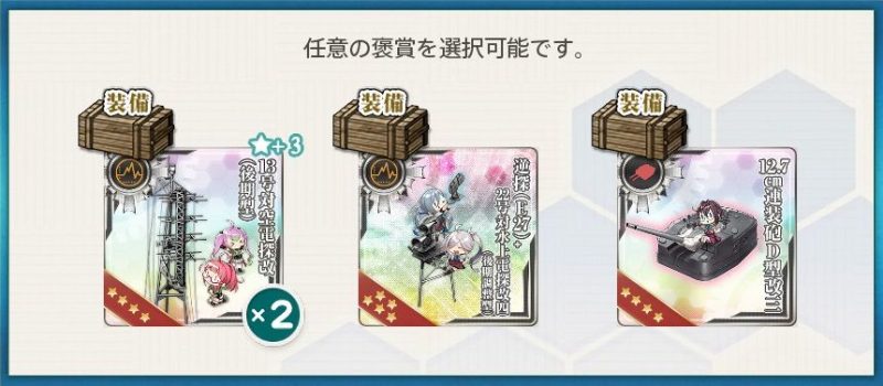 (二つ目の選択は悩みましたが、D型改三は二つあったため電探を選択しました)