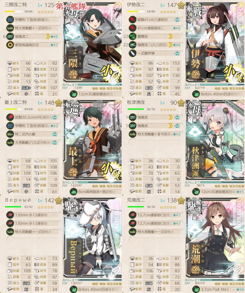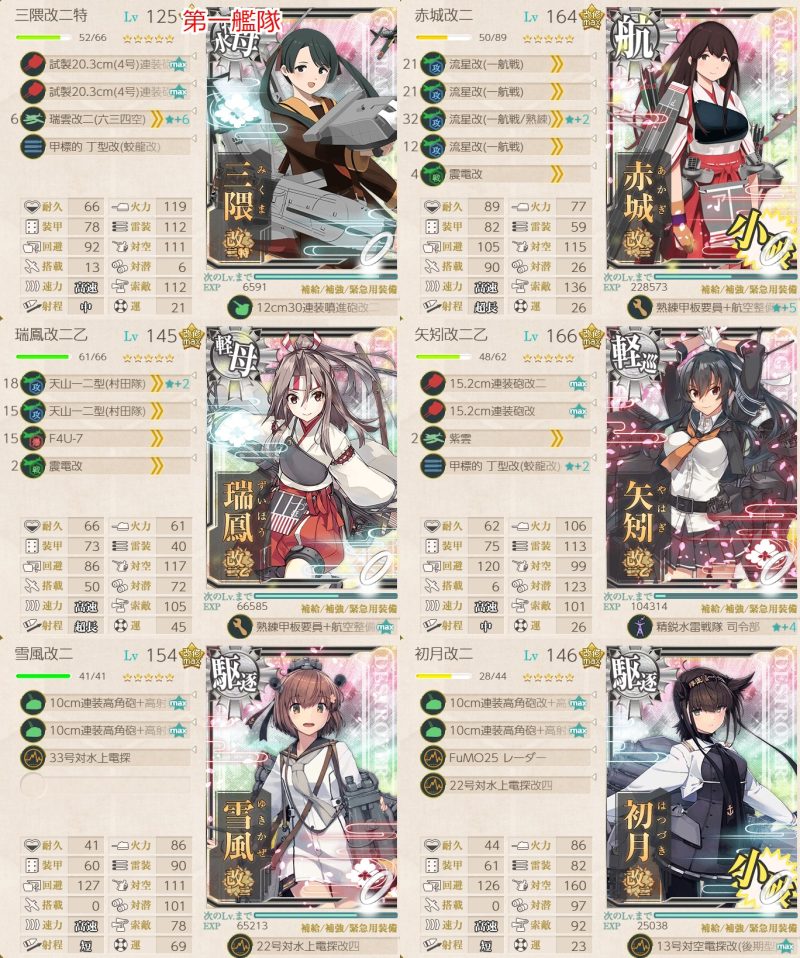 旗艦「三隈改二/改二特」+5隻自由の編成で2-3、2-4、4-5、6-4ボスで1回ずつS勝利を取得する。