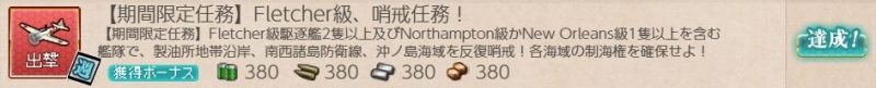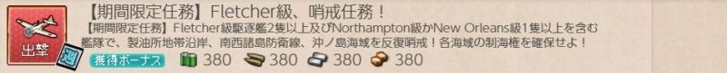 [期間限定任務][ウィークリー任務]【期間限定任務】Fletcher級、哨戒任務の記録です。