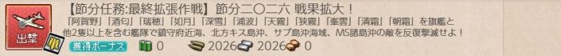 [期間限定任務][単発任務]【節分任務最終拡張作戦】節分二〇二六戦果拡大!の記録です。